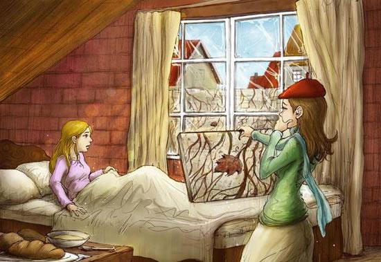 After the doctor had gone, Sue went into Johnsy’s room. Johnsy lay with her face towards the window. Sue thought that she was sleeping. So she began a drawing to illustrate a magazine story.